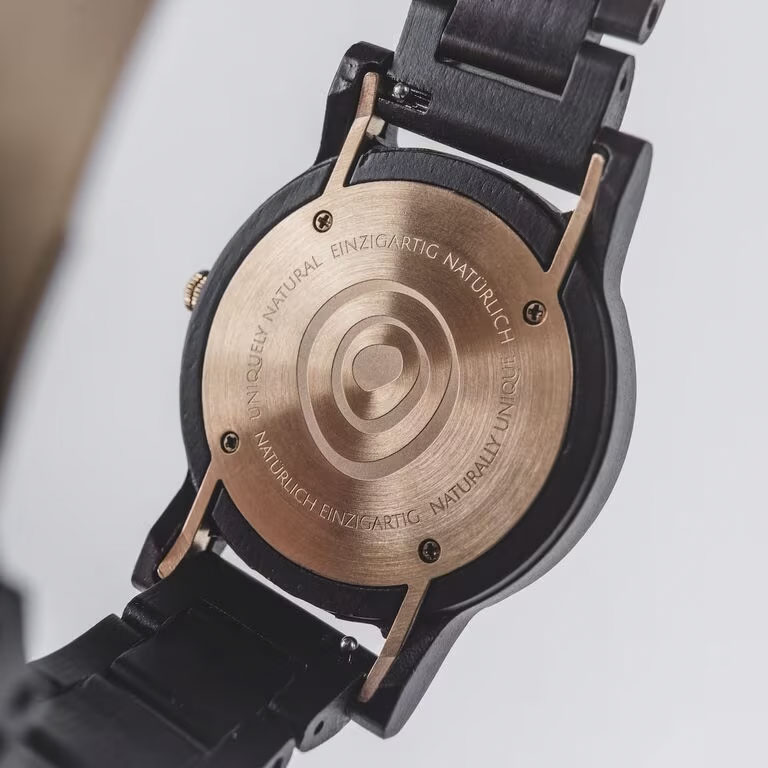 The golden hour and minute hands, along with subtle indices, provide high contrast and easy readability. Their minimalist look complements the raw materials without overpowering them—ideal for both casual and elegant occasions.