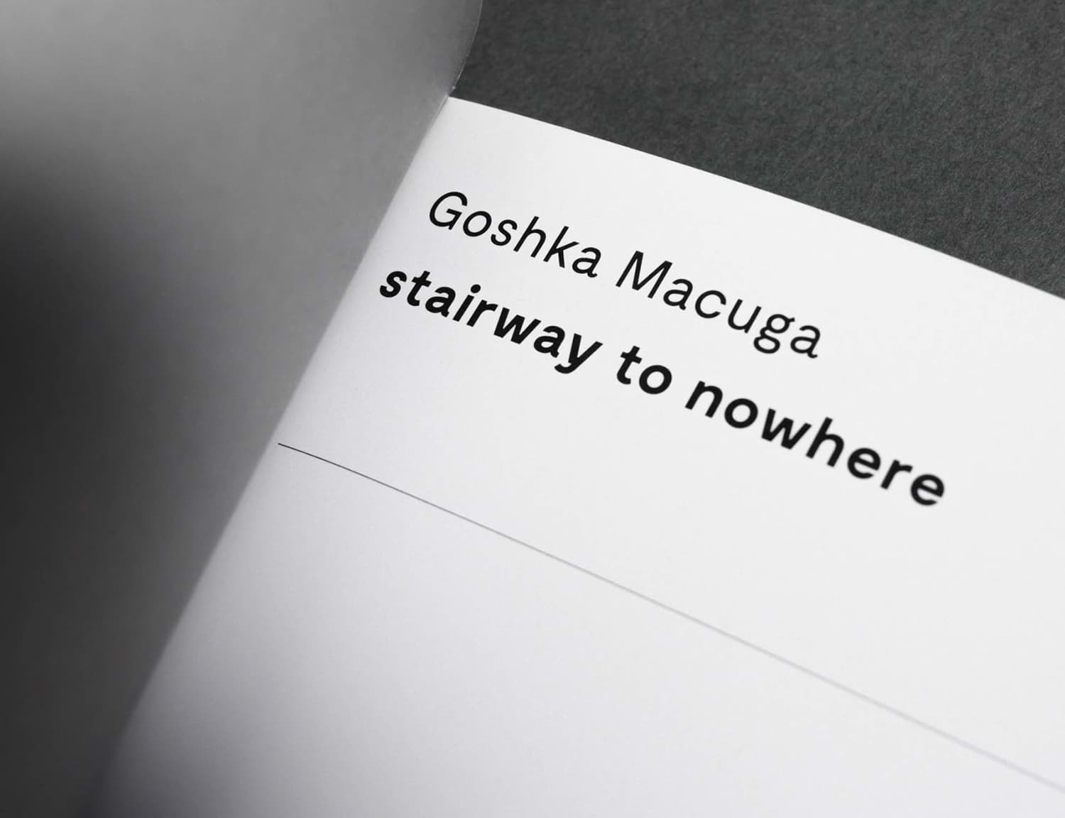 The title “stairway to nowhere” refers to a sculpture by the Bauhaus teacher Herbert Bayer. The work, consisting of an endless staircase with no beginning or end, represents the cyclical understanding of history to which Macuga refers again and again in her work. Another central topic is the question of authorship, which the artist poses on various levels: she adapts designs, integrates works by other artists or creates collaborative works.