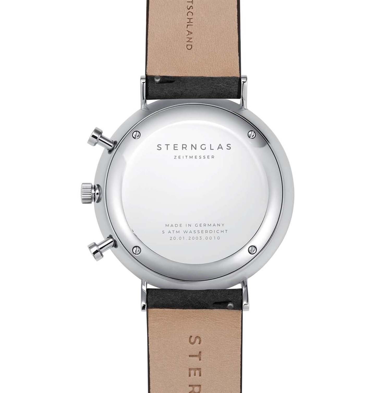 Large indexes ensure optimum readability. The outer bezel is reminiscent of outdoor measuring instruments. The double-domed sapphire crystal provides optimal scratch resistance, a clear view, and a sophisticated look. The chronograph-typical totalizers have been deliberately designed in a striking way. By pressing the pusher to trigger the stop function, seconds and minutes can be measured, while the chronograph second hand on the main dial measures the seconds during the stopping process.
