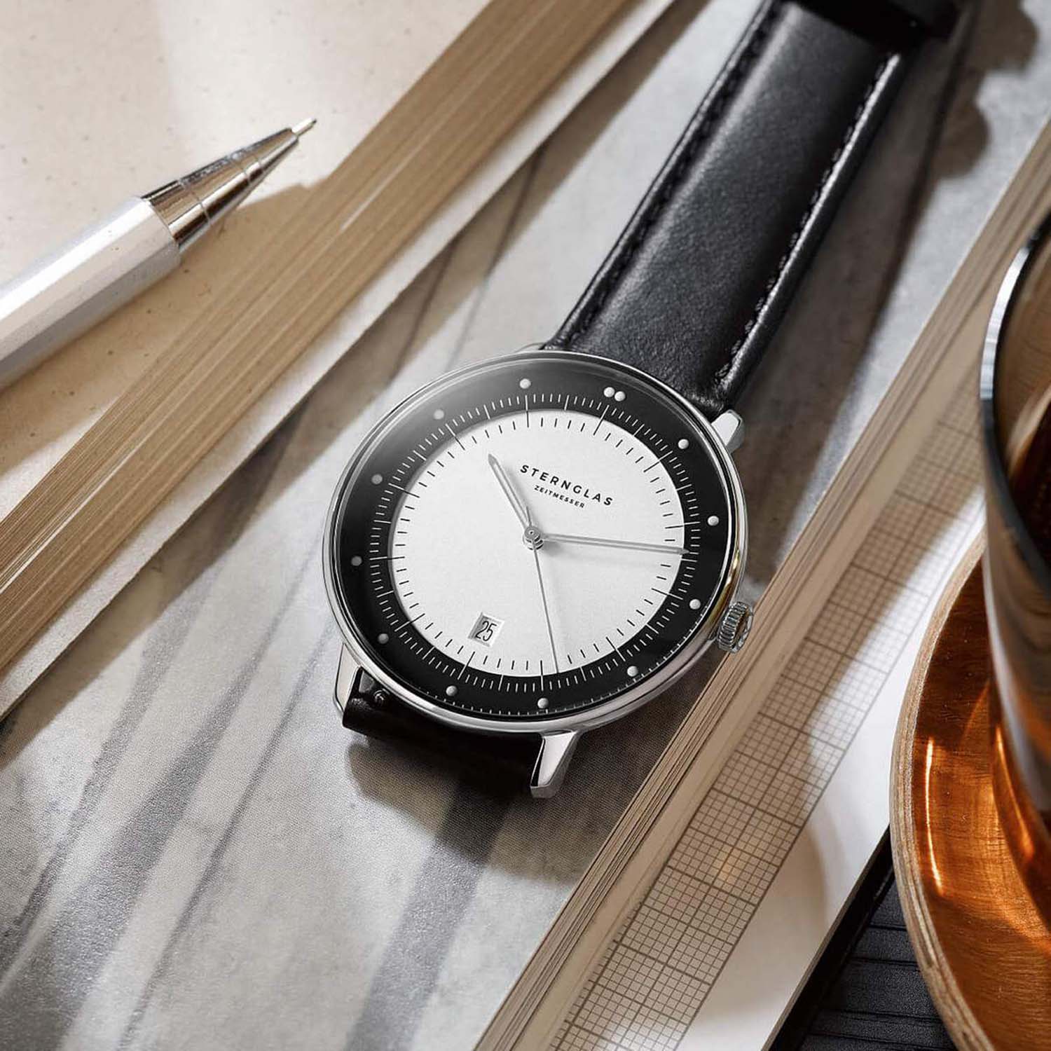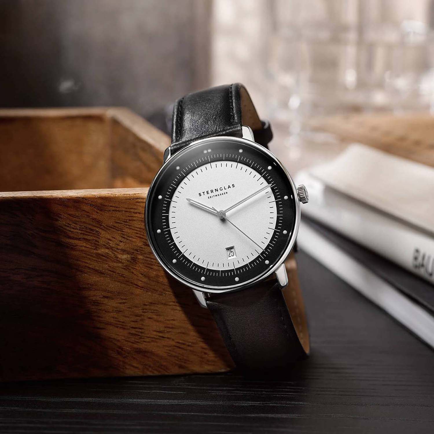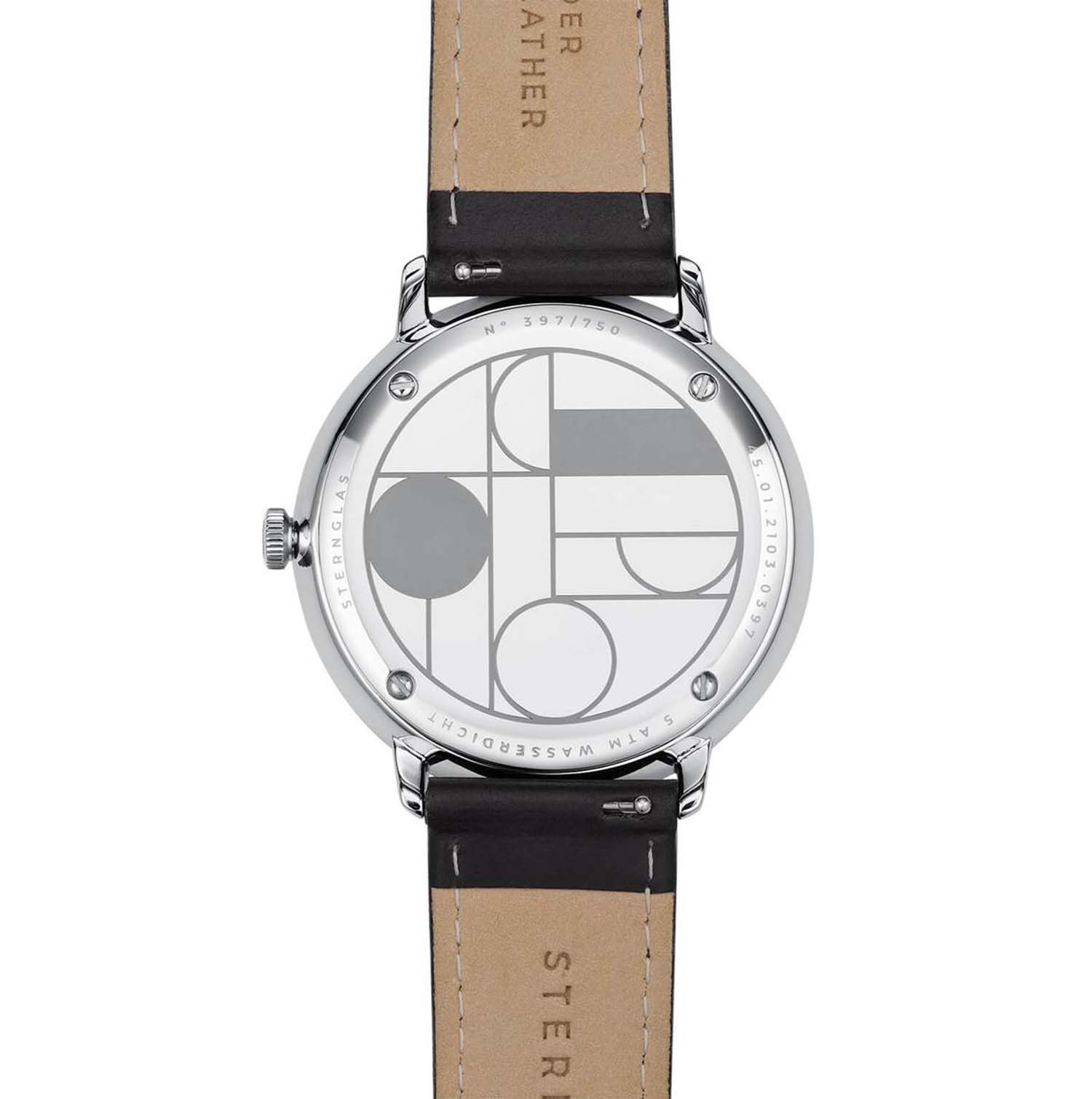 On the back of the case is a Bauhaus Edition engraving and the engraved limitation number. So each copy is a real unique piece. The Hamburg Edition Bauhaus comes with an exclusive edition strap made of black leather, with fine curvature and decorative stitching all around.