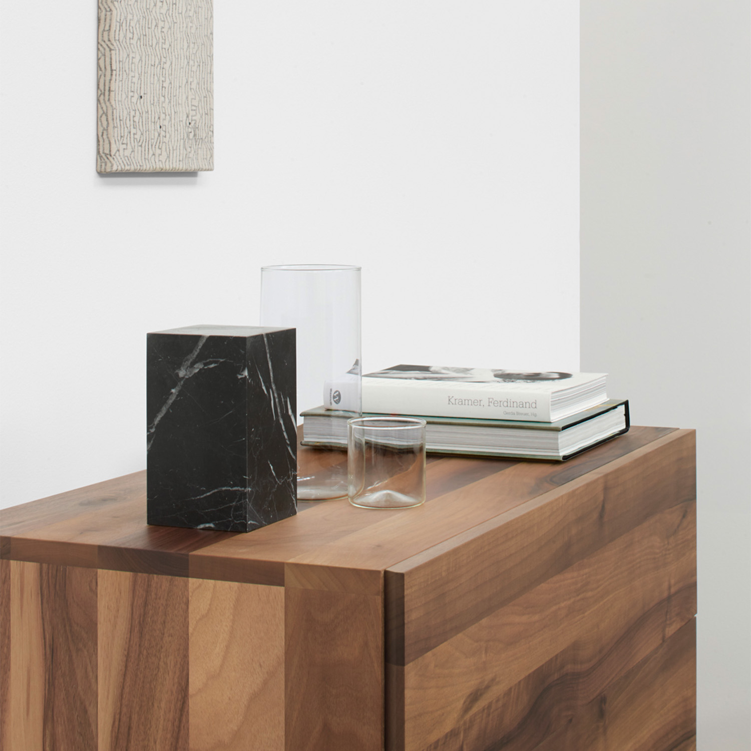 The STOP bookend, designed by Philipp Mainzer in 2013, has a cubic shape made of white Carrara or black Marquina marble. This sculptural and practical addition is made from the finest Italian marble and its simple design emphasizes the high-quality material. It is ideal as an elegant and eye-catching accessory for desks or shelves and offers scope for individual interpretation. STOP is available in two heights: 100 mm and 170 mm.