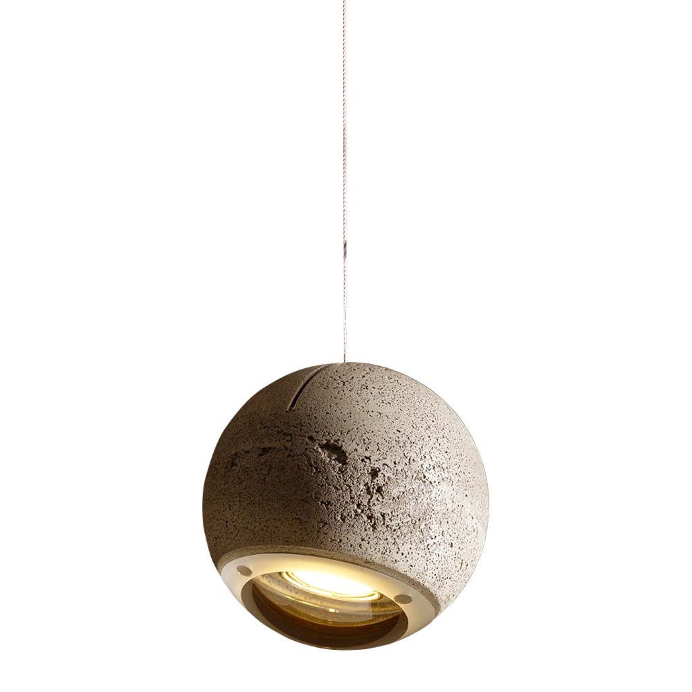 Non-adjustable pendant lamp made of pigmented special concrete, glass lens either matt or clear. Ball diameter: 140 mm.