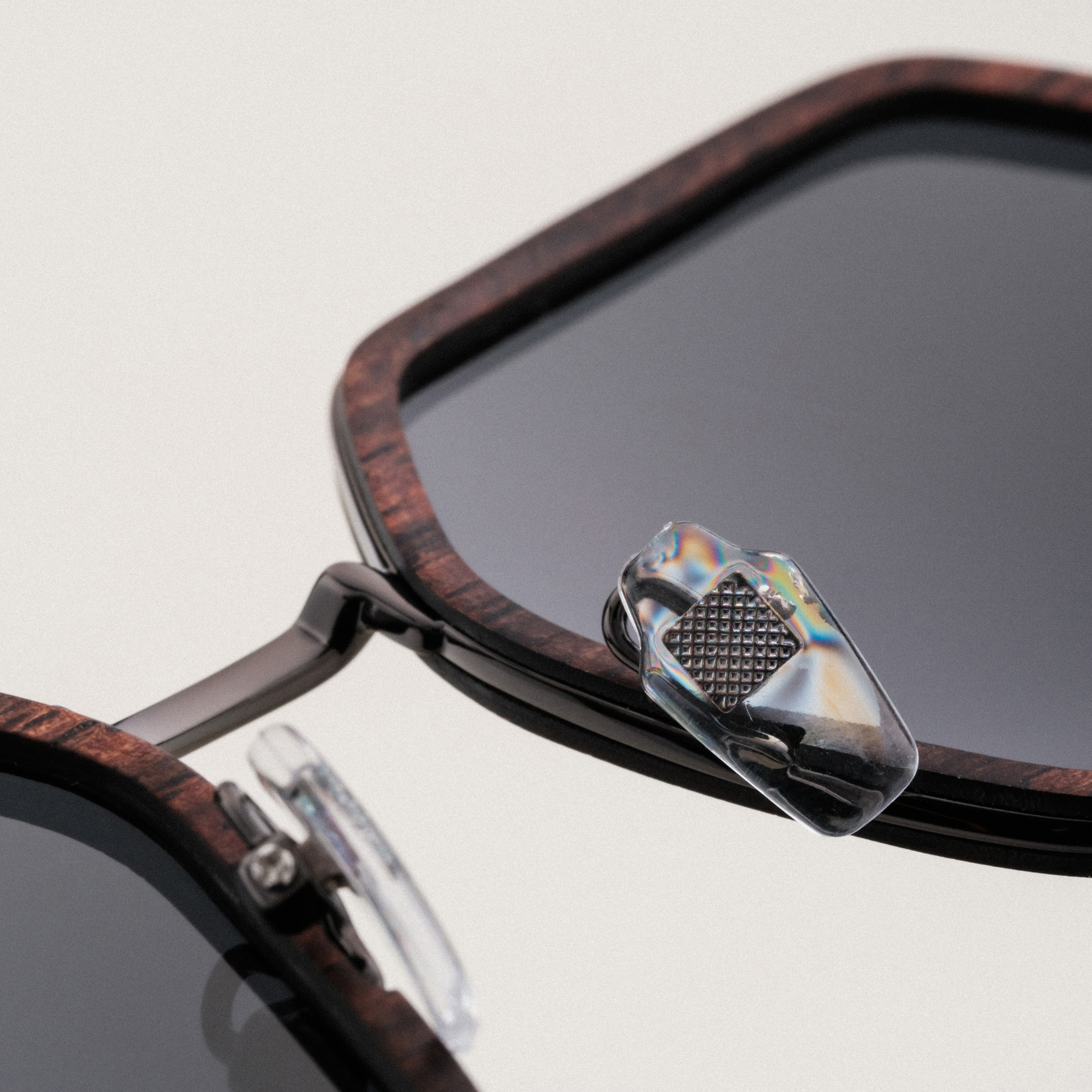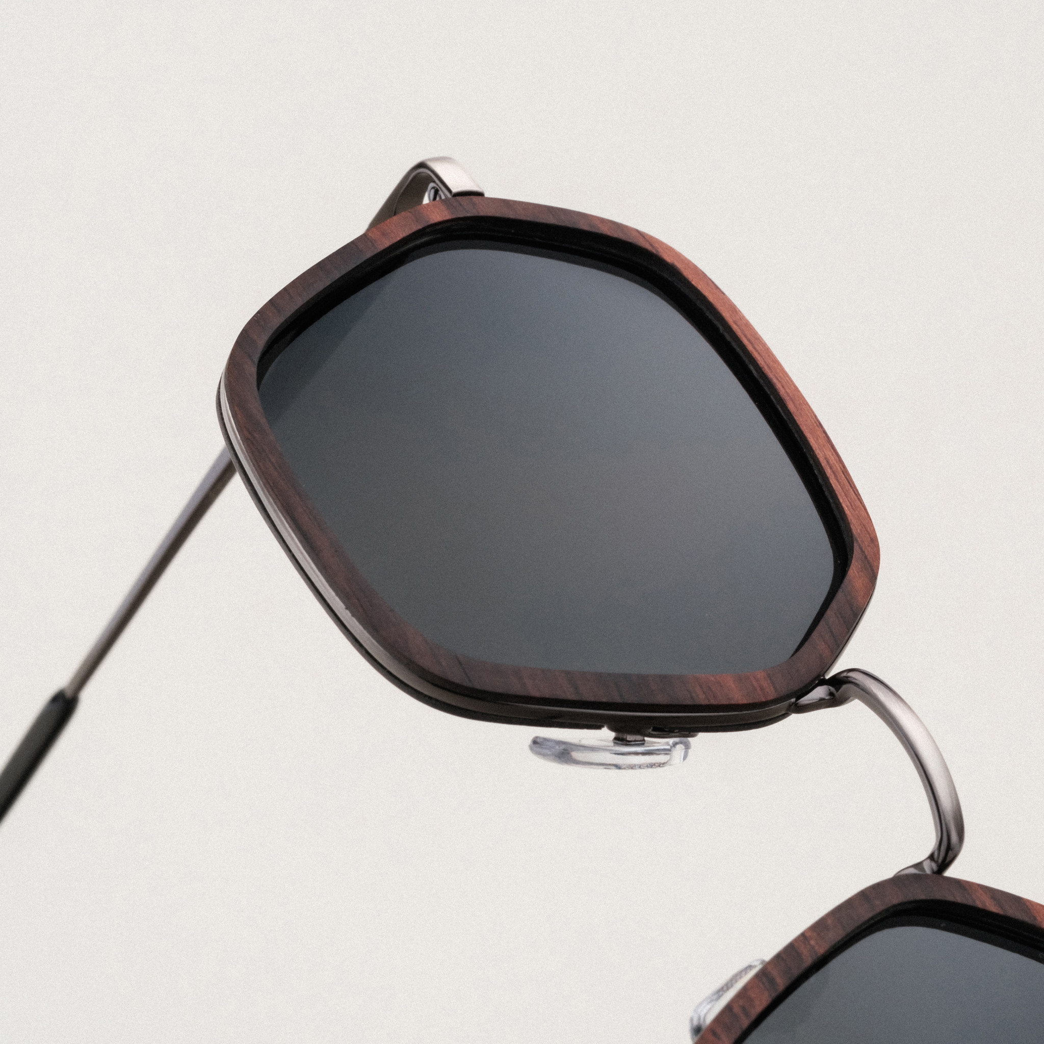 The Sincere embodies calmness, authenticity, and understated elegance. Crafted from dark-toned leadwood and stainless steel in antique silver, this pair of sunglasses is a reliable companion for everyday life – honest in its appearance, striking in its design, and true in its essence.