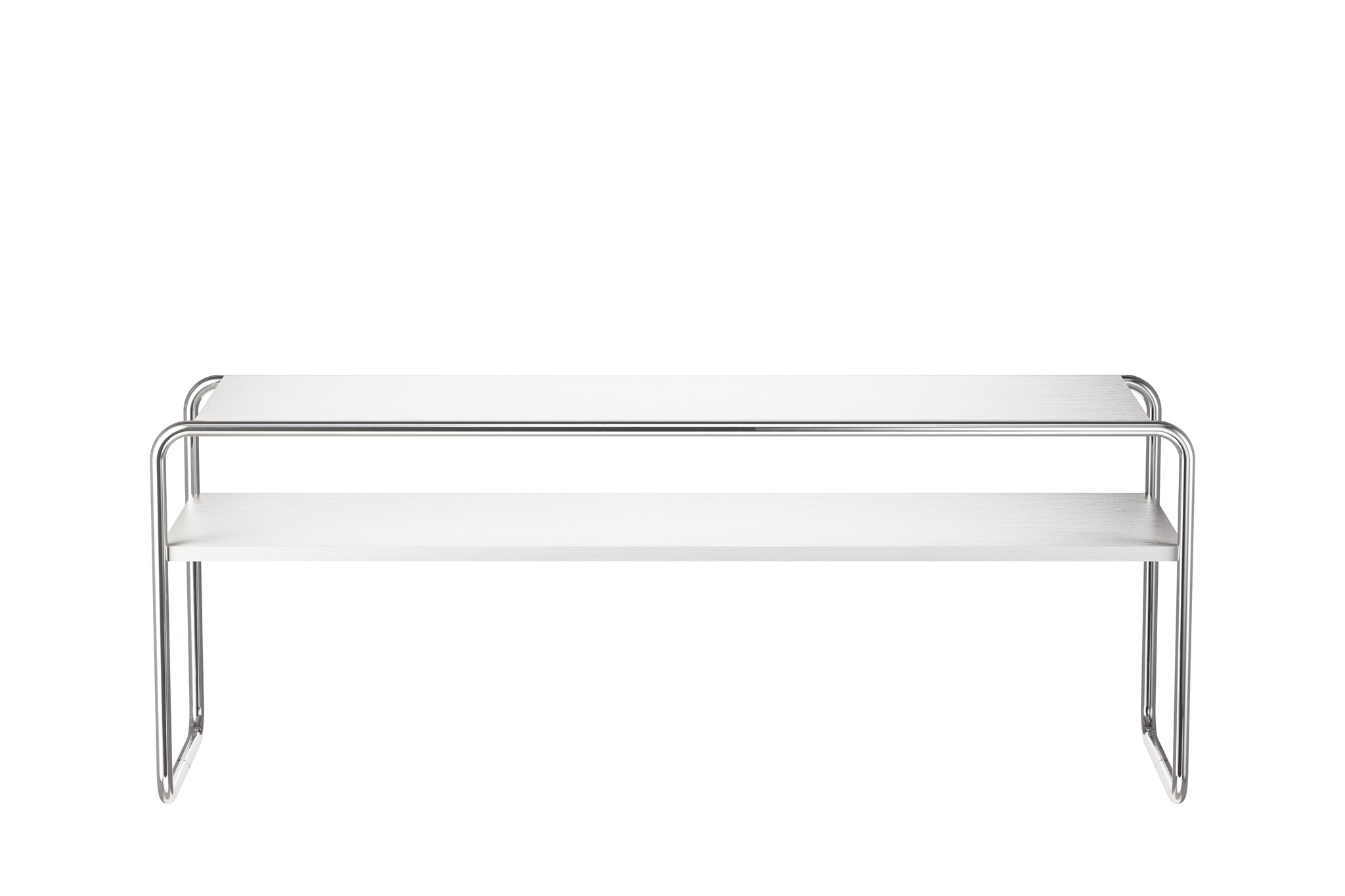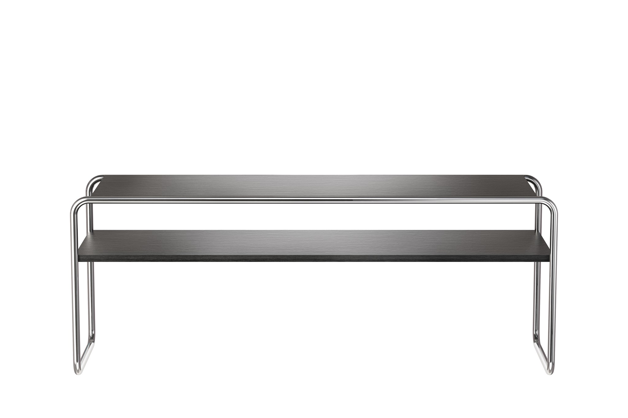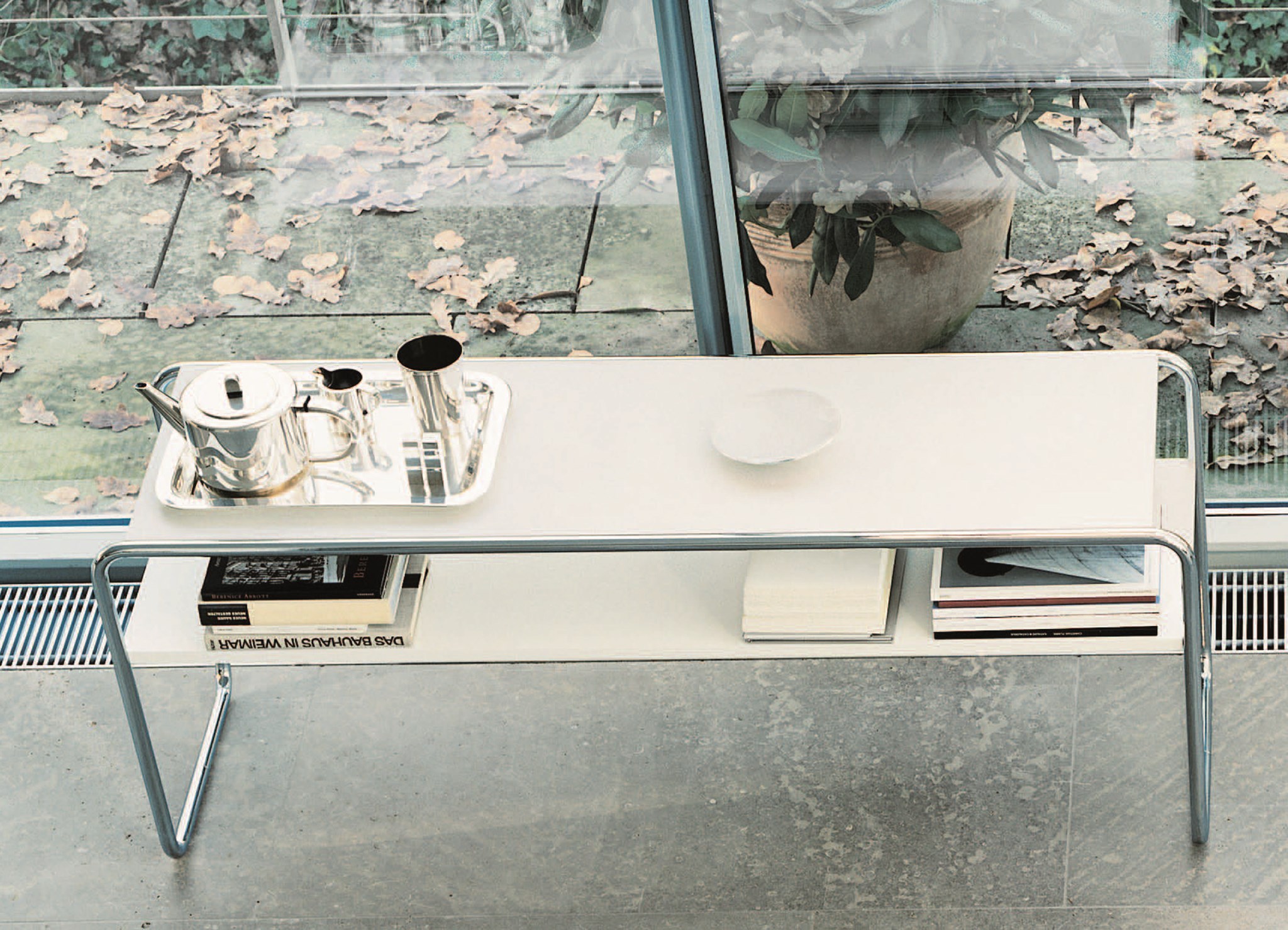 Long, narrow side tables like the B 10 are ideal for when you need to quickly put down an object – and find it again. They are also a decorative eye catcher in homes and offices. Today, their straight-lined aesthetics look familiar to us. Their inventor, Marcel Breuer, fought against overloaded and over-decorated living styles – still ubiquitous around 1920 – with his elegant, reduced tubular steel furniture. After initial experiments with tubular steel, a new material at the time, Marcel Breuer developed a series of small tables, including the long, narrow side table B 10. At the same time, he was working on an innovative chair design. With its strength and flexing properties, cold-bent tubular steel made such constructions possible. The first furniture made of tubular steel had legs and skids but did not yet make use of the flexing properties of tubular steel. Starting in 1928, Breuer began building prototypes of the cantilever chairs that we all know today. Mart Stam provided the prototype for them with his cantilever chair consisting of ten pieces of tubular steel of equal length and pipe fittings connecting them, which, at first, was rigid and inflexible. Breuer’s designs are considered milestones in the history of modern furniture. Recognising the potential of tubular steel furniture early on, Thonet collaborated with the avant-garde designers and became the world’s biggest producer of tubular steel furniture in the 1930s.