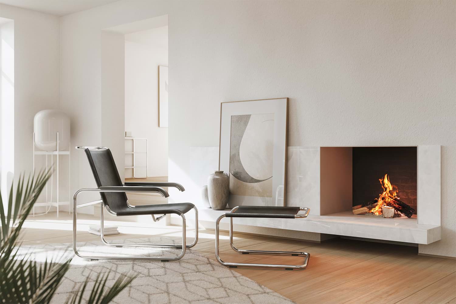 Among all the cantilever chairs of the Bauhaus epoch, the armchair S 35, with its lightness, flexibility and comfort, casts a shadow over everything heavy and inert. In 1930, the modern lifestyle communicated by the S 35 appeared visionary; today, it is part of our mobile and individual lifestyle. With S 35, Marcel Breuer succeeded in combining all of the functions of a cantilever tubular steel armchair in a single line that also includes the armrests. Breuer achieved a double cantilever effect with his design: seat and armrests flex independently from each other. The flexing movement of the seat and backrest frame cantilevered towards the back is balanced by the flexing armrests. A matching footstool is available for extra comfort – also designed as a cantilever piece of furniture. The comfortable club chair S 35 was first presented in 1930 in the famous Deutscher Werkbund exhibition at the “Salon des Artistes Décorateurs” in Paris as part of the furnishing of a prototypical high-rise apartment which Breuer realised together with Walter Gropius and Herbert Bayer.