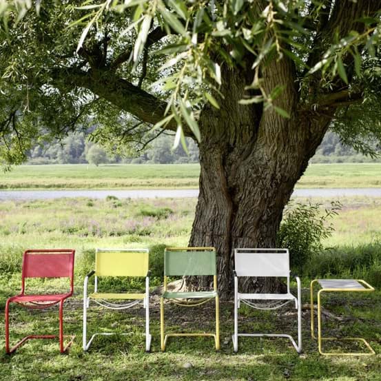 Cubic form, clear shape, fine proportions, swaying movement: the evolutionarily perfected cantilever chair S 33, which is one of the first of its kind, combines the spirit of the times and a sense of tradition. “Why four legs when two are enough,” wrote the artist Kurt Schwitters in 1927 when he saw the first cantilever chairs in furniture history. The two chairs S 33 and S 34 caused a stir at the Werkbund exhibition that opened in 1927 at the Weissenhof in Stuttgart. As early as 1925 Mart Stam had experimented with thin gas pipes, the angles of which he first connected with flanges like those used by plumbers. As a further development, Stam created the principle of cantilever chairs that no longer rested on four legs - a construction principle that, with its formal restraint, has become an important building block in the history of modern furniture design. His cantilever chairs S 33 and S 34 were more than just objectively designed furnishings, they were part of the revolutionary overall concept of a new approach to architecture and life.
