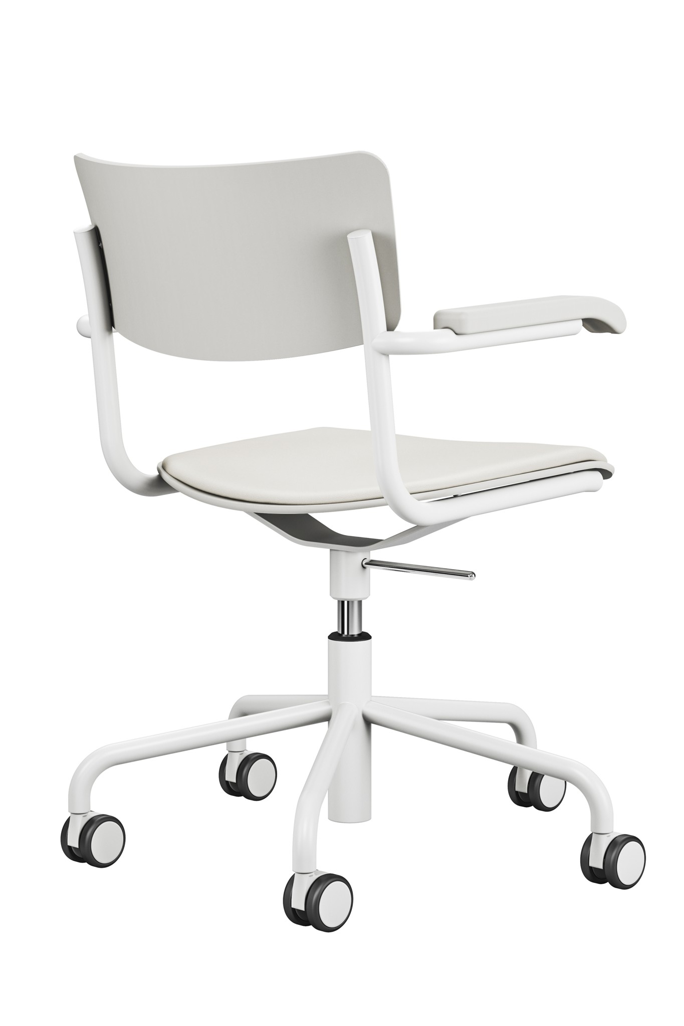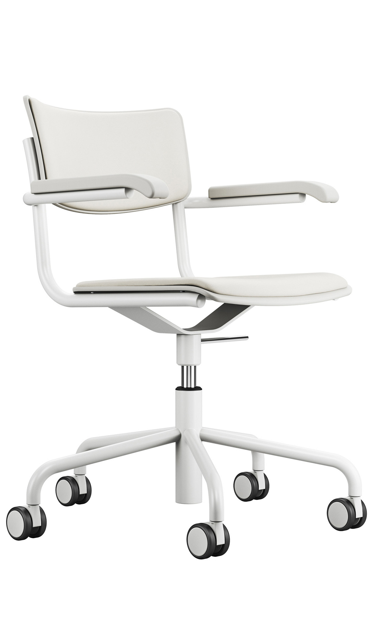 Mart Stam removed the back legs from furniture that for centuries had been created based on the same principles. Through evolutionary refinement, an object that simply looks good in any place where both understatement and quality are wanted. For his furniture designs, Mart Stam placed a high value on usefulness and austerity with regard to aesthetics as well as material. The straight-lined form, a clear construction and improved sitting comfort resulted from this approach. Stam achieved the greatest possible reduction with the cantilever chair S 43 by combining the tubular steel frame with moulded wood elements for seat and backrest. The pure, restrained form of this cantilever chair makes it an exemplary design in the spirit of modernism. Today, Thonet owns the artistic copyright for the strictly cubic chair without back legs. The reading hall for natural sciences of the German National Library in Leipzig was furnished with the cantilever chair S 43 in 1933. More than 70 years later, Thonet delivered more of the S 43 chairs as an addition to the existing furniture. Only tubular steel furniture of the highest quality, as is typical for Thonet, exhibit such durability and sustainability. In all of his furniture designs Mart Stam relied on straightforward forms, an aesthetic economy of means in the construction and the benefit of improved seating comfort. In the case of S 43 he combined the tubular steel frame with moulded plywood shells for seat and back and thus created an absolute reduction. Due to the comfortable flexing effect of the frame, upholstery is unnecessary. Its clear, reserved form makes this cantilever chair an exemplary design in the spirit of modernism. Today, Thonet owns the artistic copyright for this strictly cubic “chair with no rear legs”.