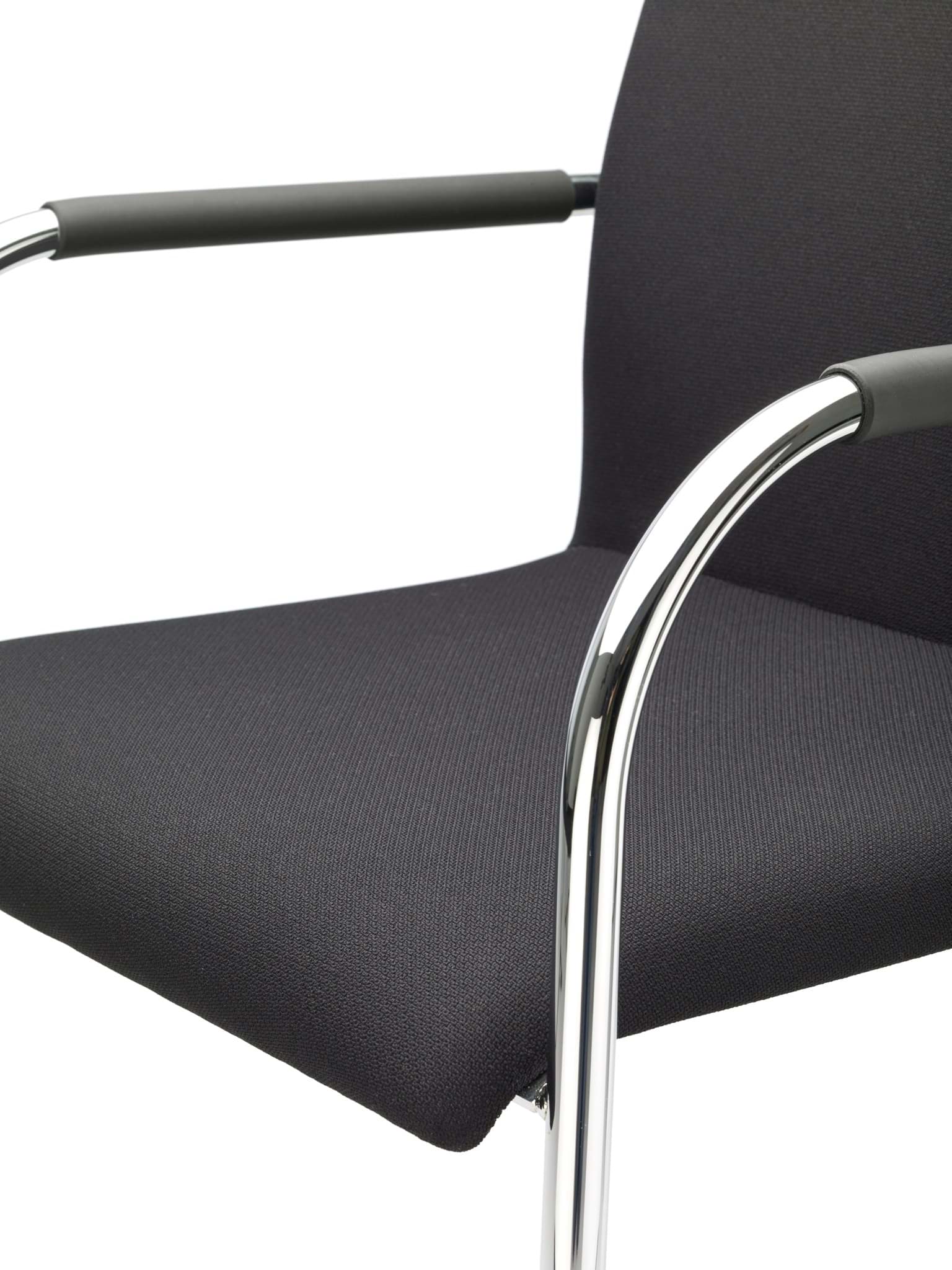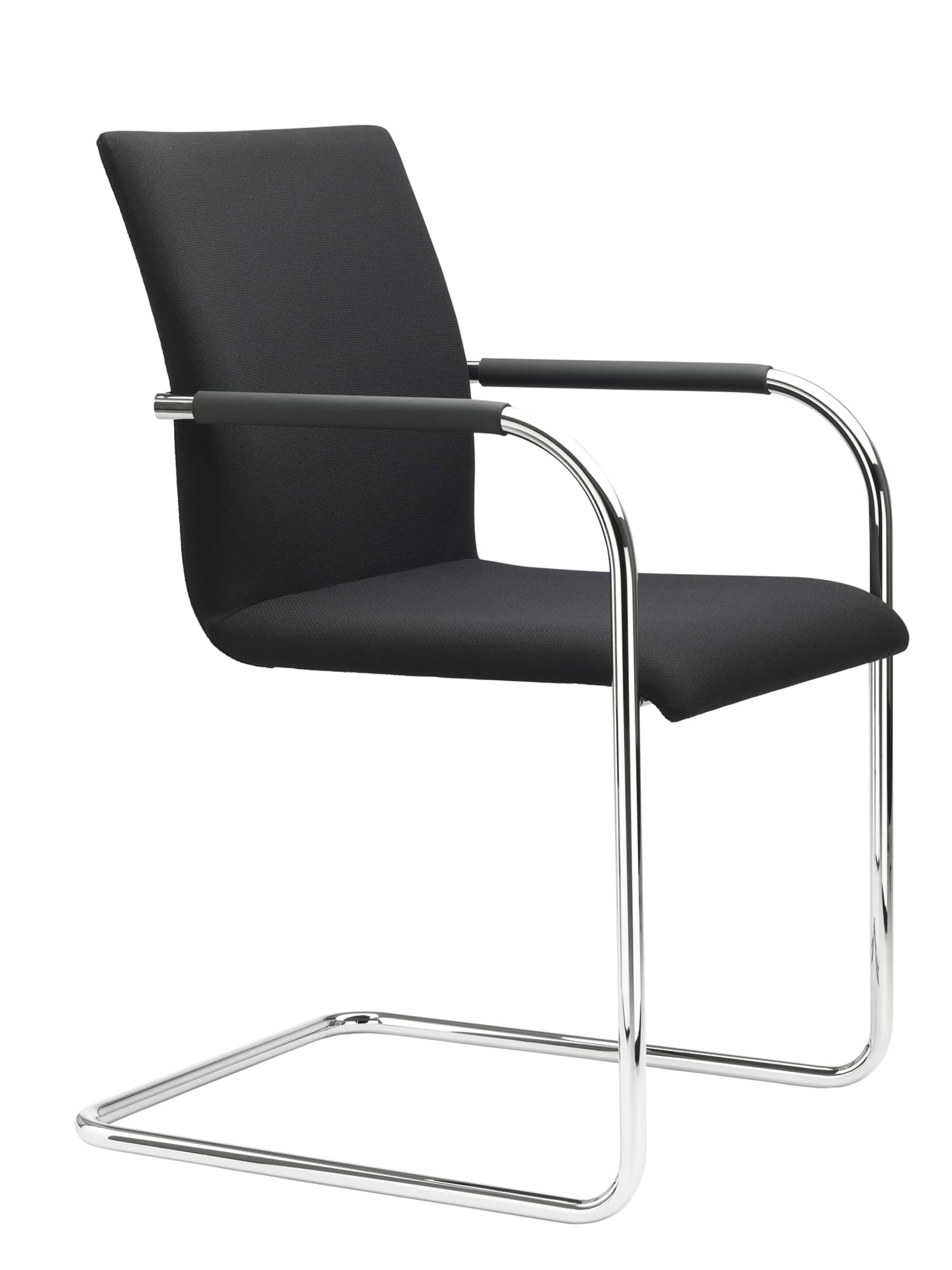 This versatile chair, based on the construction principle of the cantilever chair, is both comfortable and elegant. The one-piece seat shell is extremely comfortable, the design is minimalistic and clear and it is manufactured according to Thonet's high quality standards. It can be used in a wide variety of locations, from conference and meeting rooms to training and seminar rooms and even in private homes. The model is produced with two different backrest heights and is also available as a swivel chair and in a stackable version.