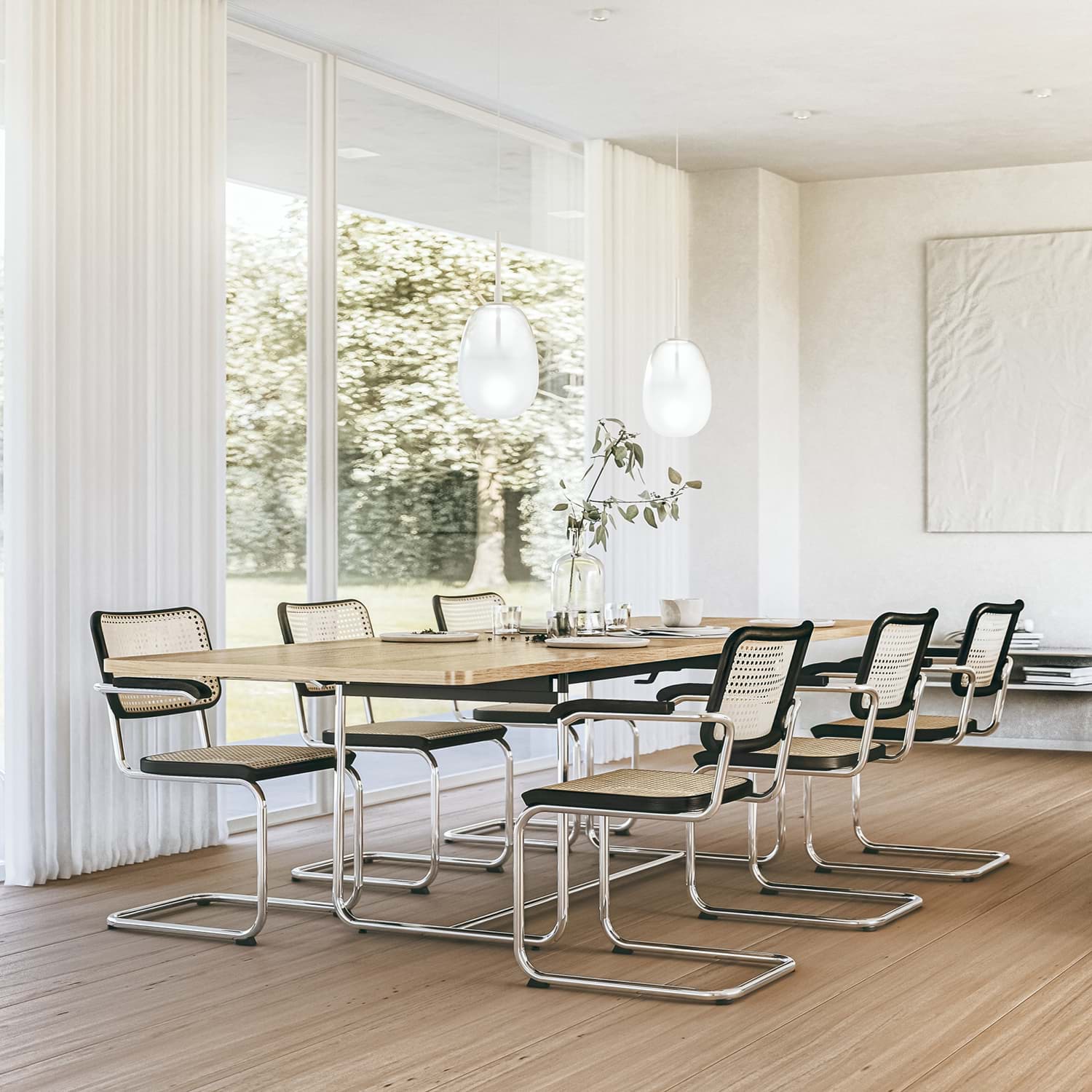 The S 32 and S 64 chairs by Marcel Breuer are icons of Bauhaus design. The combination of tubular steel and wood and the minimalist design perfectly reflect the Bauhaus philosophy - functionality, simplicity and timeless aesthetics. These chairs are sturdy, durable and perfect for modern interiors.