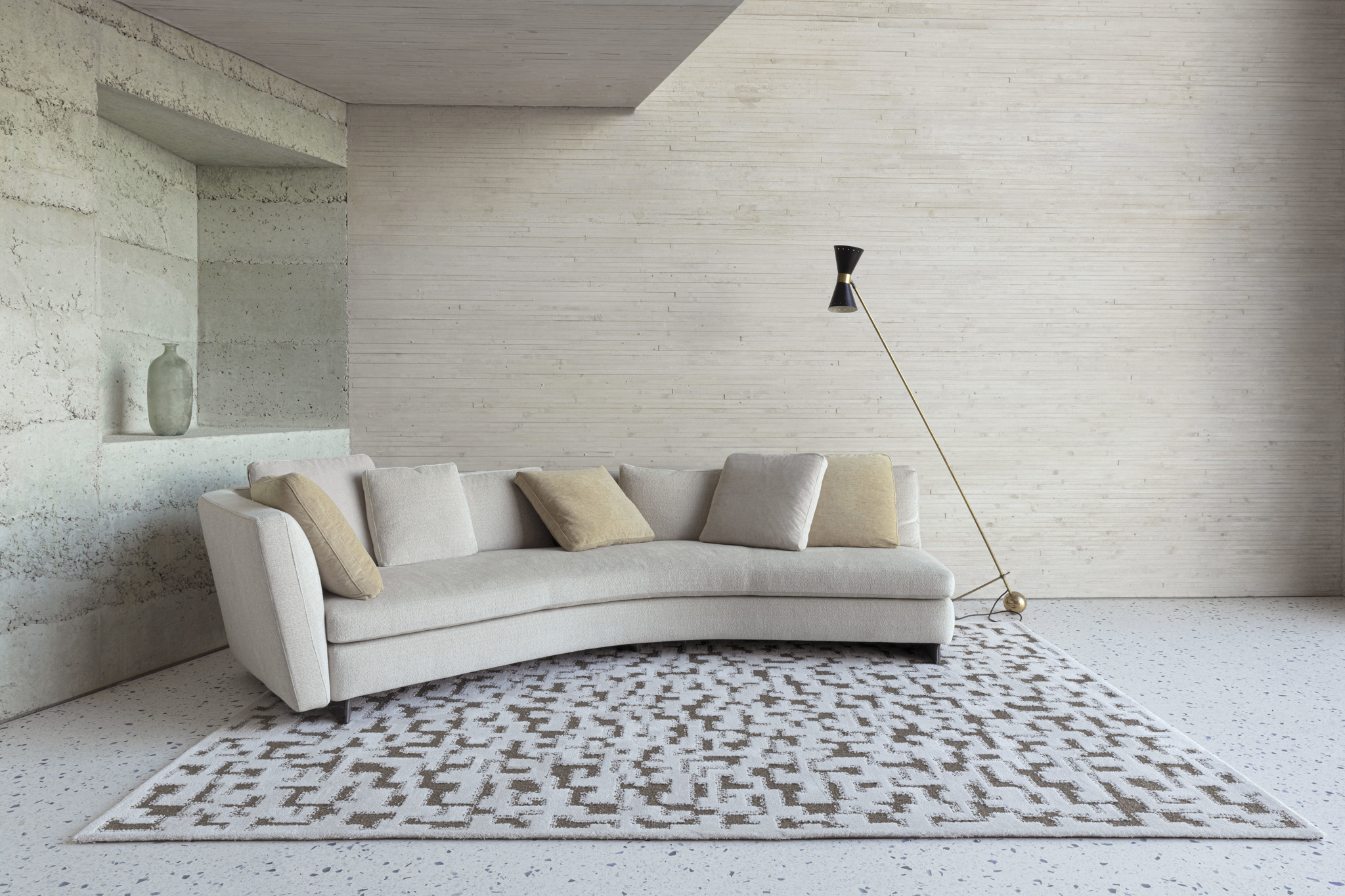 Tonic Nomad is 100 % hand‑made in Belgium, from yarn spinning to final tufting. Its wool-silk blend ensures both resilience and subtle sheen, while its abstract contours and tactile surface create visual intrigue in every installation.