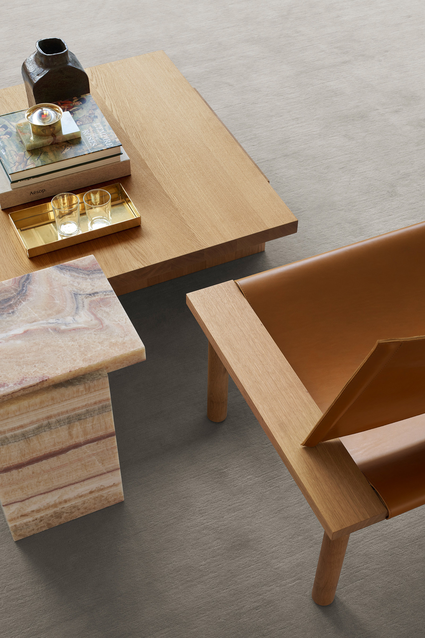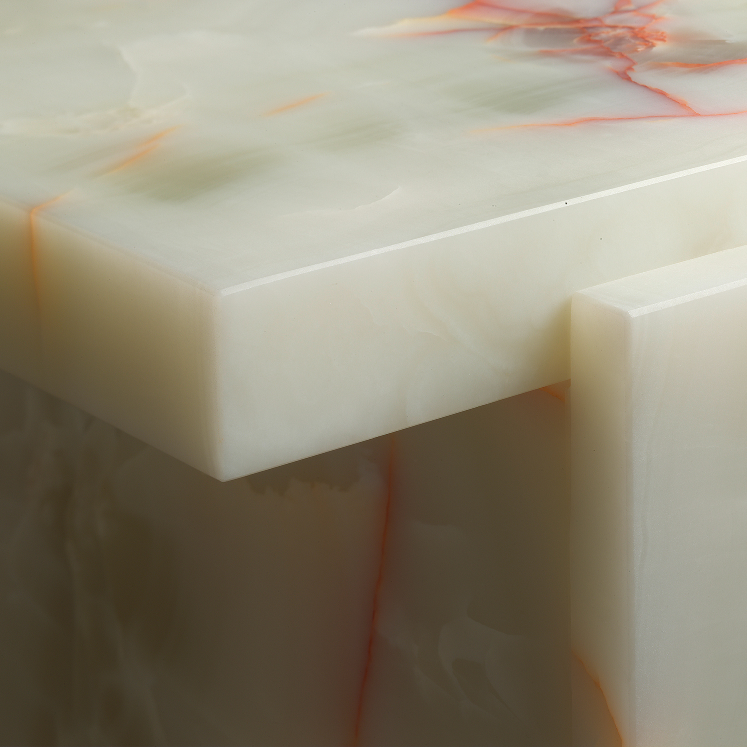The TORE ONYX side table by e15, designed by David Thulstrup in 2020, is an outstanding creation that is now available in Onyx. With color options in a soft verde or the warm spice tones of Fantastico, this table allows to highlight the concept of mono-materiality. The refined geometric shapes in the spirit of Art Deco allow TORE ONYX to be arranged into expressive architectural landscapes. This elegant and timeless addition epitomizes e15's commitment to clean lines and architectural aesthetics.