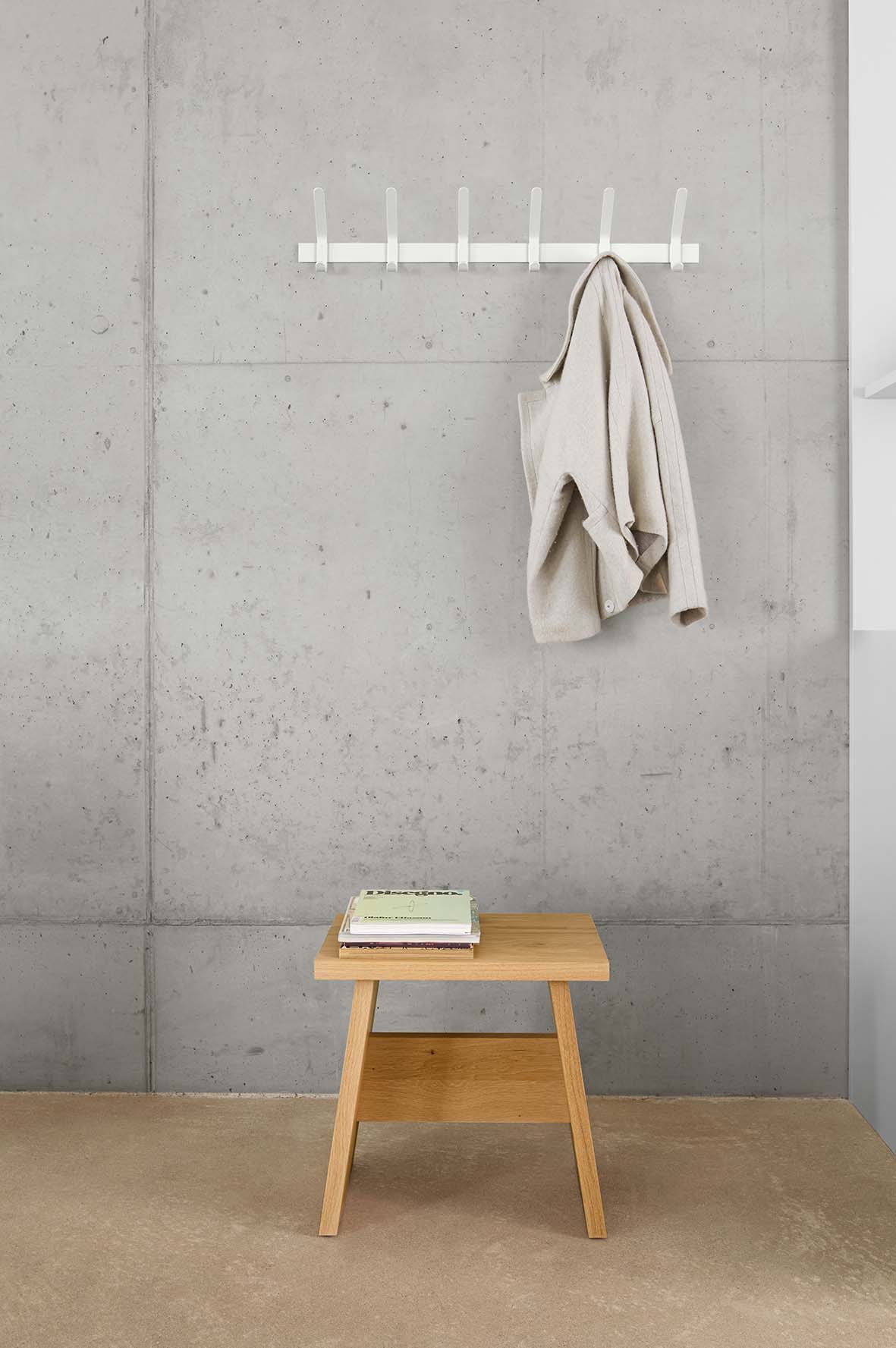 UNI is a simple and remarkably modern coat rack, designed by German functionalist architect Ferdinand Kramer around 1954 as part of a family of products for the Johann Wolfgang Goethe University Frankfurt. The functional, reduced coat rack UNI is available with three or six hooks. In powder-coated steel, the re-edition is available in contemporary colours and is perfectly suited for diverse environments.
