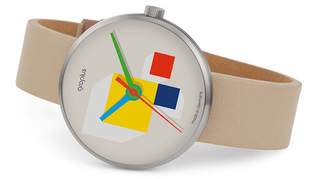 The inspiration for the HAUSBAUHAUS collection was the cover of the Bauhaus book series "Bauhaus Books" published by Walter Gropius and Lazlo Moholo-Nagy. The design of the clocks represents the architectural reflections at the Bauhaus in Weimar and stands for insights, outlooks and vistas through color and form theory at the Bauhaus.