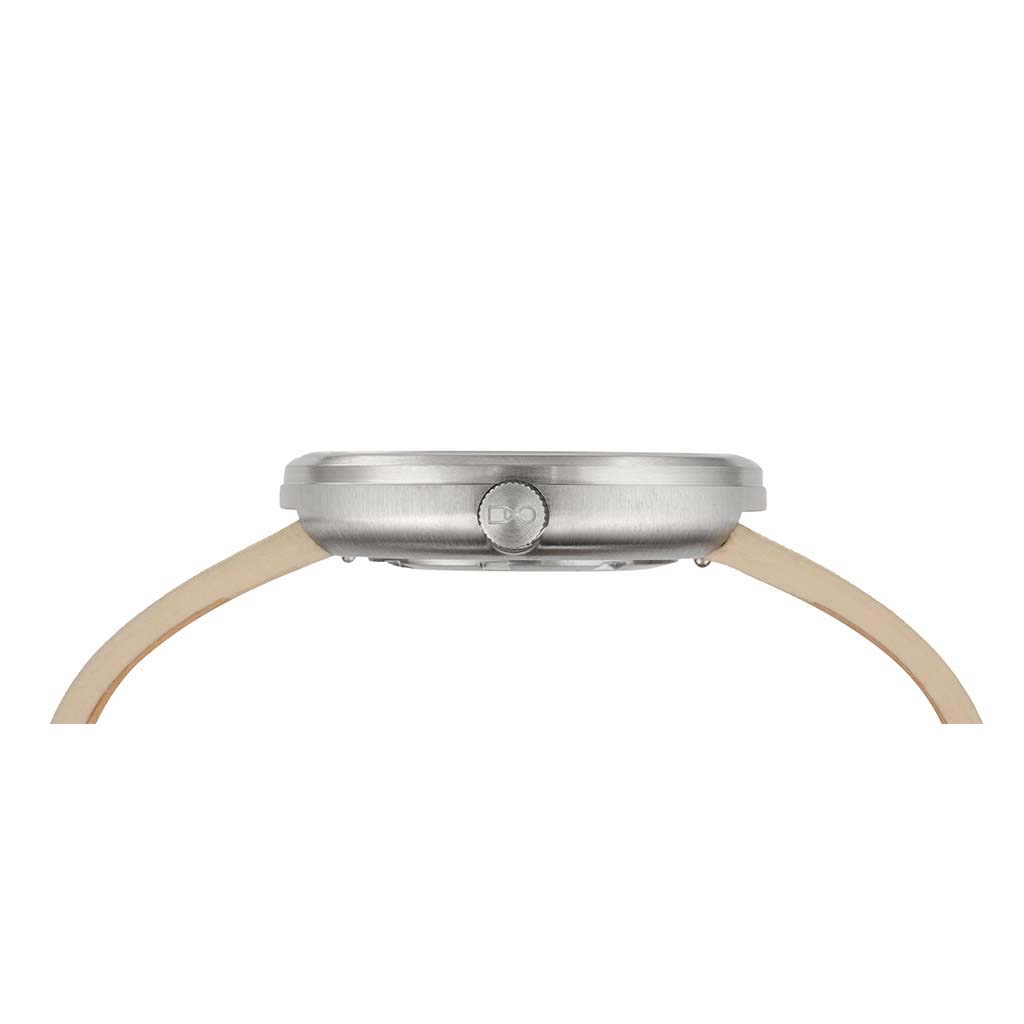 The HAUSBAUHAUS collection has a water resistance up to 5 bar and if required, the fine beige genuine leather strap can be replaced with other colors or a stainless steel bracelet. The Citizien Miyota movement is protected by 100% resistant stainless steel and a scratch-resistant sapphire crystal.