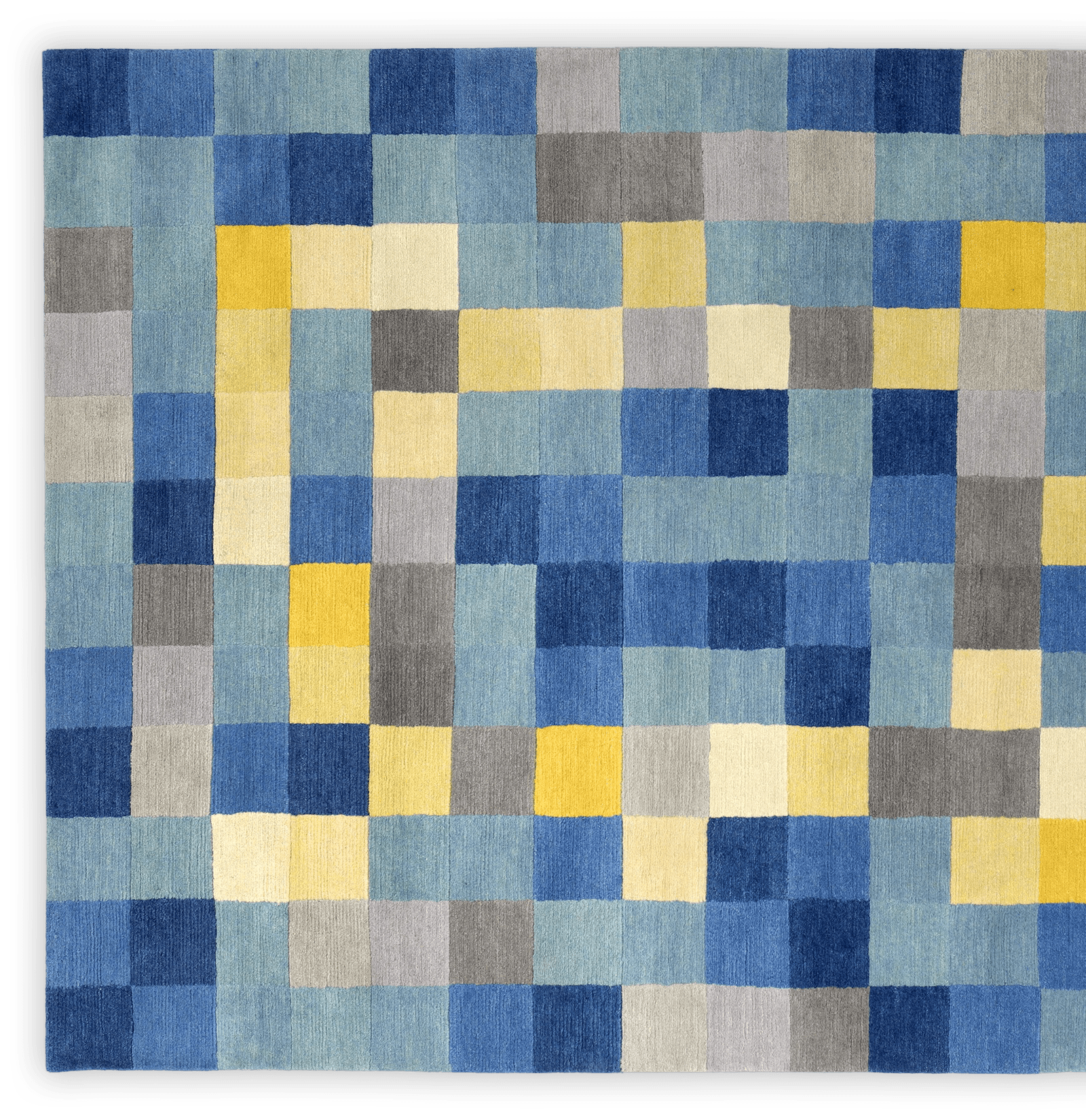 2 consists of 192 hand-knotted specifically arranged squares, the basic colour spectra are different shades of blue and grey, which are