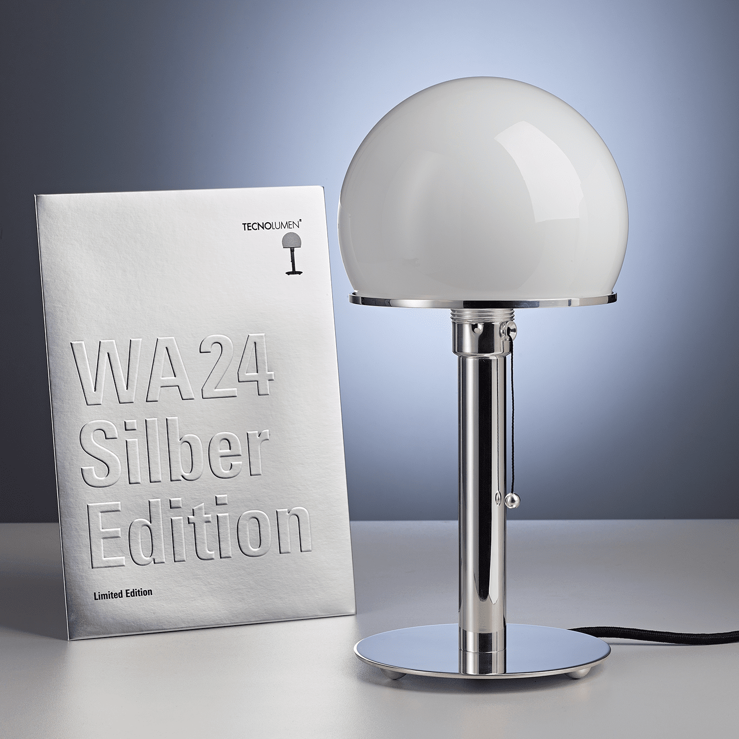Only reedition protected by copyright and authorized by Prof. Wilhelm Wagenfeld. Dr. Meike Noll-Wagenfeld, the daughter of Wilhelm Wagenfeld, has kindly agreed that TECNOLUMEN may produce this silver-plated version for the 100th anniversary of the Bauhaus.
