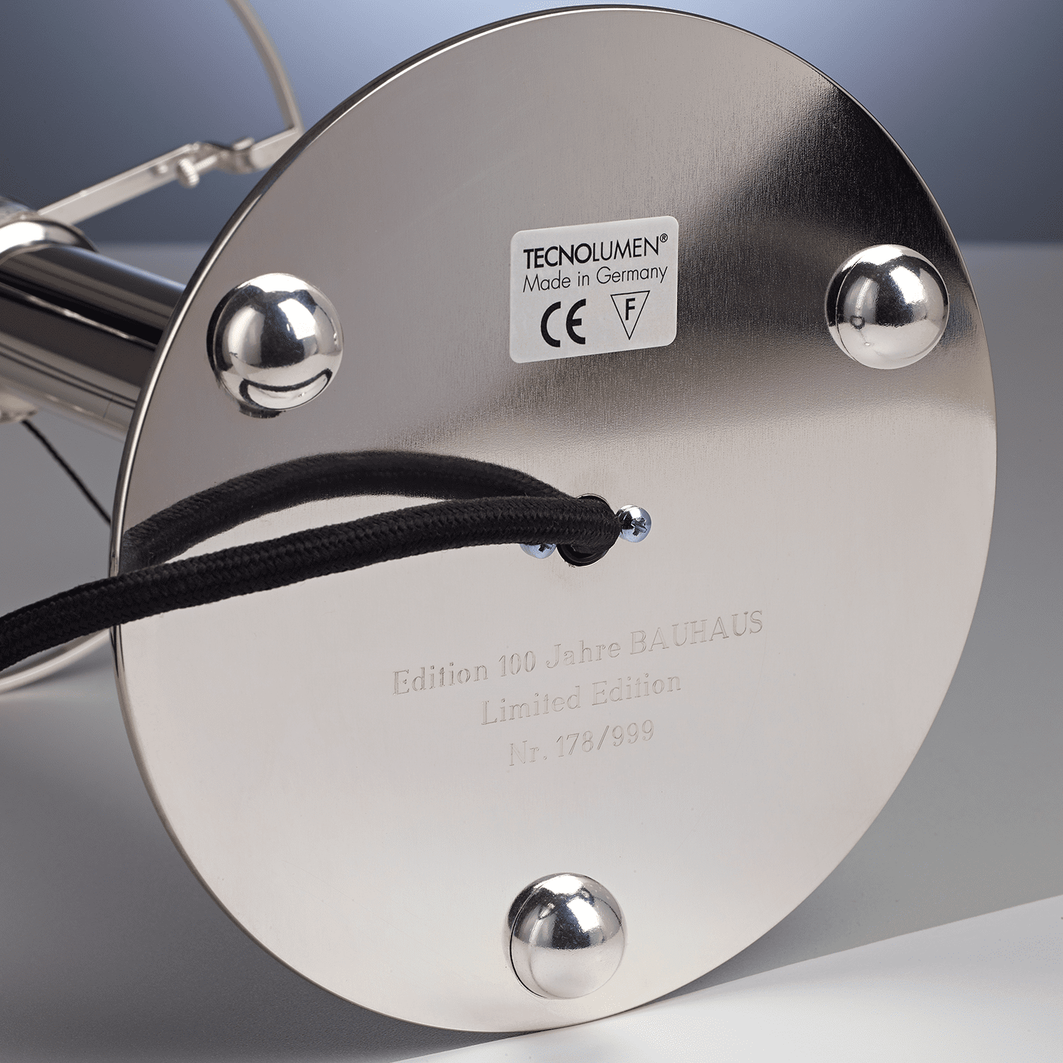 Only copyright protected and reedition authorized by Prof. Wilhelm Wagenfeld. Dr. Meike Noll-Wagenfeld, the daughter of Wilhelm Wagenfeld, has kindly agreed that TECNOLUMEN may produce this silver-plated version for the 100th anniversary of the Bauhaus.